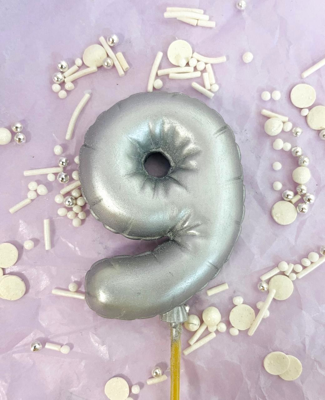 Фигурка из шоколадной глазури "Цифра-Шарик 9" серебро