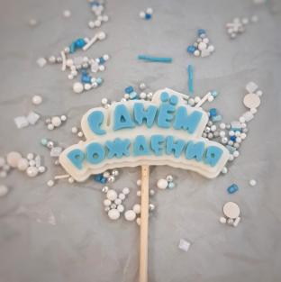 Фигурка из шоколадной глазури "С Днём Рождения" голубая120 руб.Размер: 6×3 см.Состав: кондитерская глазурь (сахар, заменитель какао нетемперируемый лауринового типа (гидрогенезированное пальмоядровое масло, эмульгаторы: Е492, соевый лецитин), сухая мололочная сыворотка, носитель: карбонат кальция, эмульгатор лецитины: эмульгатор Е476, ароматизатор ванилин), кра...