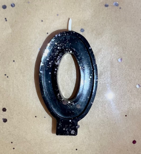 Свеча для торта восковая "Гламур", "Цифра 0" черная с серебром100 руб.Свечи изготовлены вручную из 100% пчелиного воска и добавления красителей.Высота свечи - 5,5см.