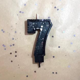 Свеча для торта восковая "Гламур", "Цифра 7" черная с серебром100 руб.Свечи изготовлены вручную из 100% пчелиного воска и добавления красителей.Высота свечи - 5,5см.