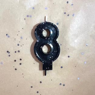 Свеча для торта восковая "Гламур", "Цифра 9" черная с серебром100 руб.Свечи изготовлены вручную из 100% пчелиного воска и добавления красителей.Высота свечи - 5,5см.